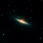 PTF composite image of M82, the Cigar Galaxy. Red = H-alpha, green = R-band, blue = g-band.